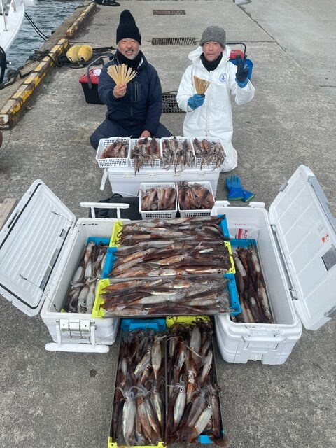 スルメイカ釣り釣果ブログ / 2024年3月21日 2024年3月21日 開始から終了時間までずぅーっとノリノリ(^.^)♪♪♪ 天日干しも美味しそうに仕上がり 皆さま満足いく釣果となりました。 本日はありがとうございました。