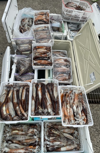 スルメイカ釣果ブログ / 2022年5月15日 2022年5月15日 今日も入れノリ♪♪♪ ライトタックル(4本針)のお客様でも100杯オーバー。 多く釣られたお客様方は400杯弱。 絶好調続きのスルメイカですが、ご予約は5月末日までとさせていただきます。。。