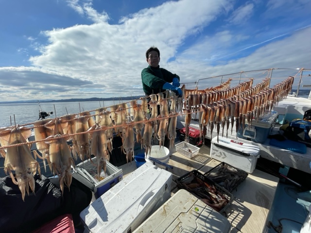 スルメイカ釣果ブログ / 2023年2月22日 2023年2月22日 反応バッチリ! ソナーで反応を追いかけながら投入する度に1ー9杯ぶらぶら釣っていかれ 多く釣られたお客様はらくーに3ケタオーバー。 船上はジェット噴射(イカが吐き出す海水)のかけあい状態でした!笑 本日はありがとうございました。