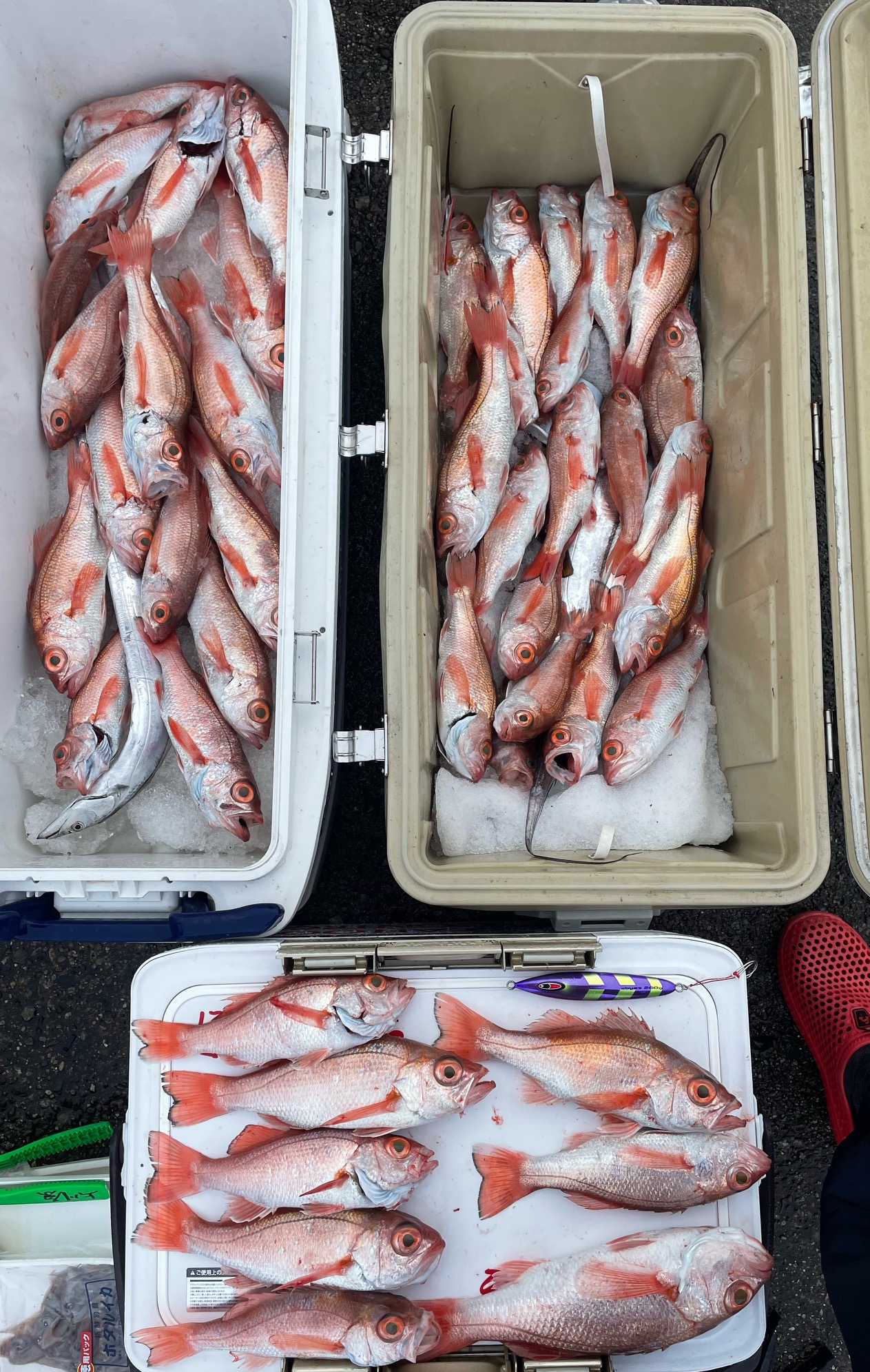 アカムツ(のどぐろ)釣果ブログ / 2023年1月4日 2023年1月4日 4日(水) 3名様にて7時間便で出港してきました。 ルアーのお客様 8匹。 餌釣りのお客様 16匹、19匹。 バラシもかなりありましたが 3名様で43匹釣っていかれました。 本日もありがとうございました。