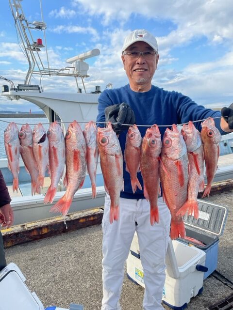 アカムツ釣り釣果ブログ / 2023年11月15日 2023年11月15日 時化続きでしたので久々の出航(8時間便)。 多く釣られたお客様は19匹!と素晴らしい釣果。 外道魚もまじりましたが5ー19匹。 船中36匹あがりました。 本日はありがとうございました。