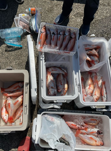 アカムツ釣果ブログ / 2023年8月29日 2023年8月29日 開始から食い気ありあり(^^♪ 回収中に何匹もサヨナラしていきましたが サイズ揃いで船中37匹(うち金魚3匹)、サバ、茶ムツ。 本日もありがとうございました。