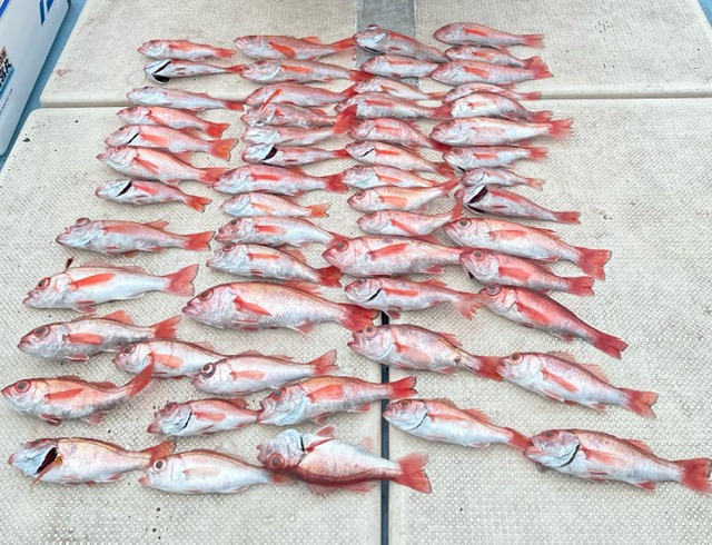 アカムツ釣果ブログ / 2023年12月5日 2023年12月17日 3,4日と食い渋りでしたが、今日は食いも良く あちらこちらでヒット!ヒット!の連発。 バラシも多数匹有りつつも竿頭さまで23匹、4名様で船中56匹。 外道魚にマダイ アラ サゴシ サバ。 本日はありがとうございました。