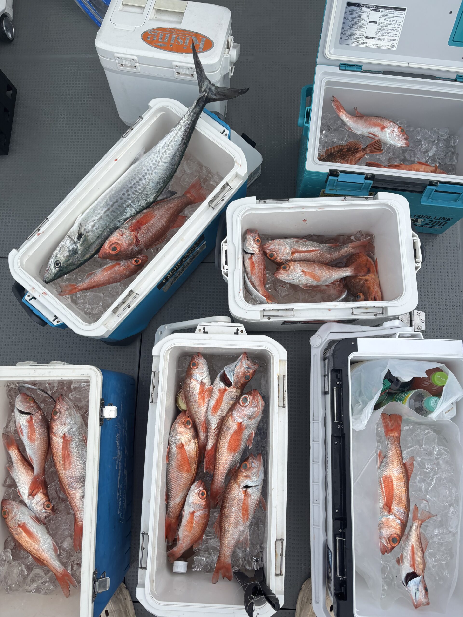 アカムツ釣果ブログ / 2025年10月18日 2025年10月18日 小さなアタリも見逃さず、コツコツと着実に釣っていかれました。 外道魚は太刀魚 カツオ カサゴ 茶ムツなど。 スペシャルゲストに4kのサワラも♪♪♪ 本日はありがとうございました。