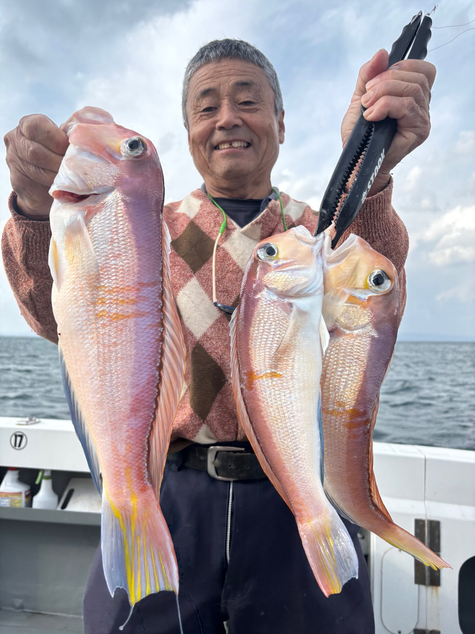 本命はアカムツでしたが 食いの悪い日でしたので アマダイ、カワハギを狙っていただきました。