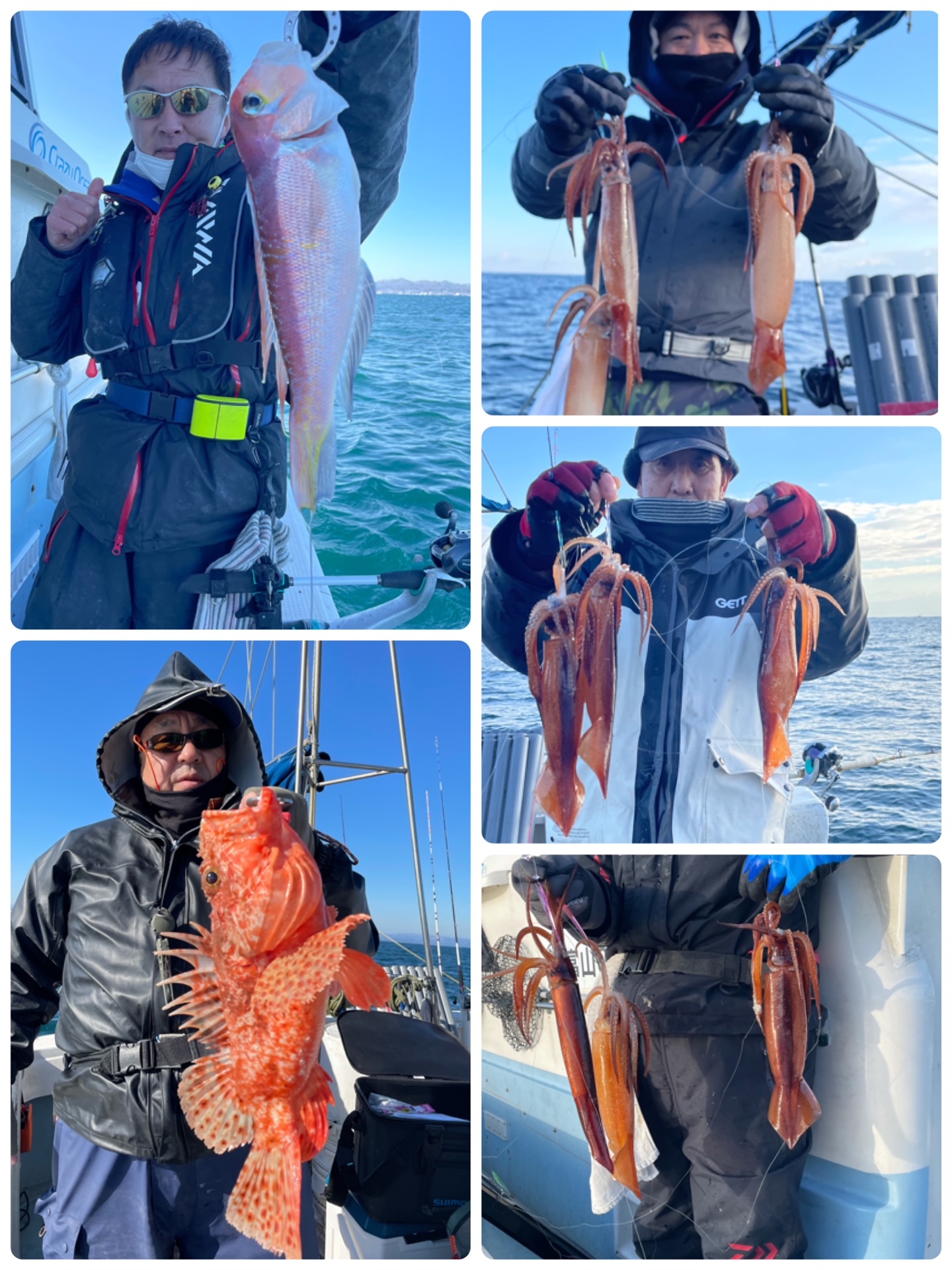 イカ 根魚釣果ブログ / 2022年1月8日 2022年1月8日 朝一にヤリイカを狙いましたがスルメイカ…。 風が強く吹き釣りづらい状況になりましたので、根魚狙いに変更しアマダイ 鬼カサゴなど釣っていただきました。 本日はありがとうございました。