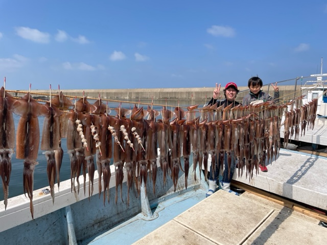 スルメイカ釣り釣果ブログ / 2023年4月1日 2023年4月1日 小学2年生 未来の釣りボーイさま スルメイカ釣り初トライで 長い仕掛けに手こずりながらも、30杯弱釣っていかれました。 本日はありがとうございました。