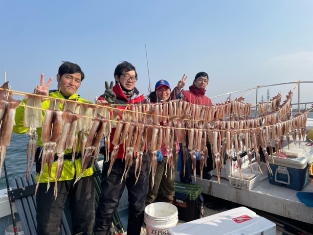 スルメイカ釣り釣果ブログ / 2023年3月8日 2023年3月8日 今日も反応バッチリ! イカさんのノリも良く、皆さま ぶらぶらと釣っていかれ スソのお客様でも40数杯、多く釣られた方々は楽々3桁オーバー。 本日はありがとうございました。