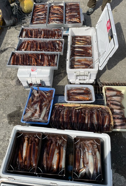 スルメイカ釣り釣果ブログ / 2024年3月31日 2024年3月31日 3/30、31日の釣果。 今日も朝から反応バッチリ! 直仕掛け ブランコ仕掛け どの仕掛けも 皆さま ぶらぶら♪♪♪ スソのお客様でも80杯ちょい 慣れたお客様方は楽々束越え、2束越えのお客様も(*^o^*)♪ クーラーぱつぱつ…(°_°) 本日はありがとうございました。