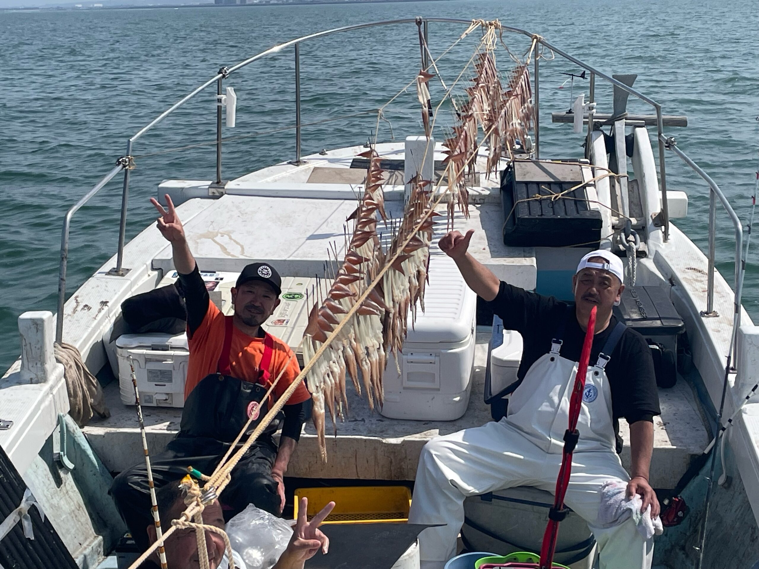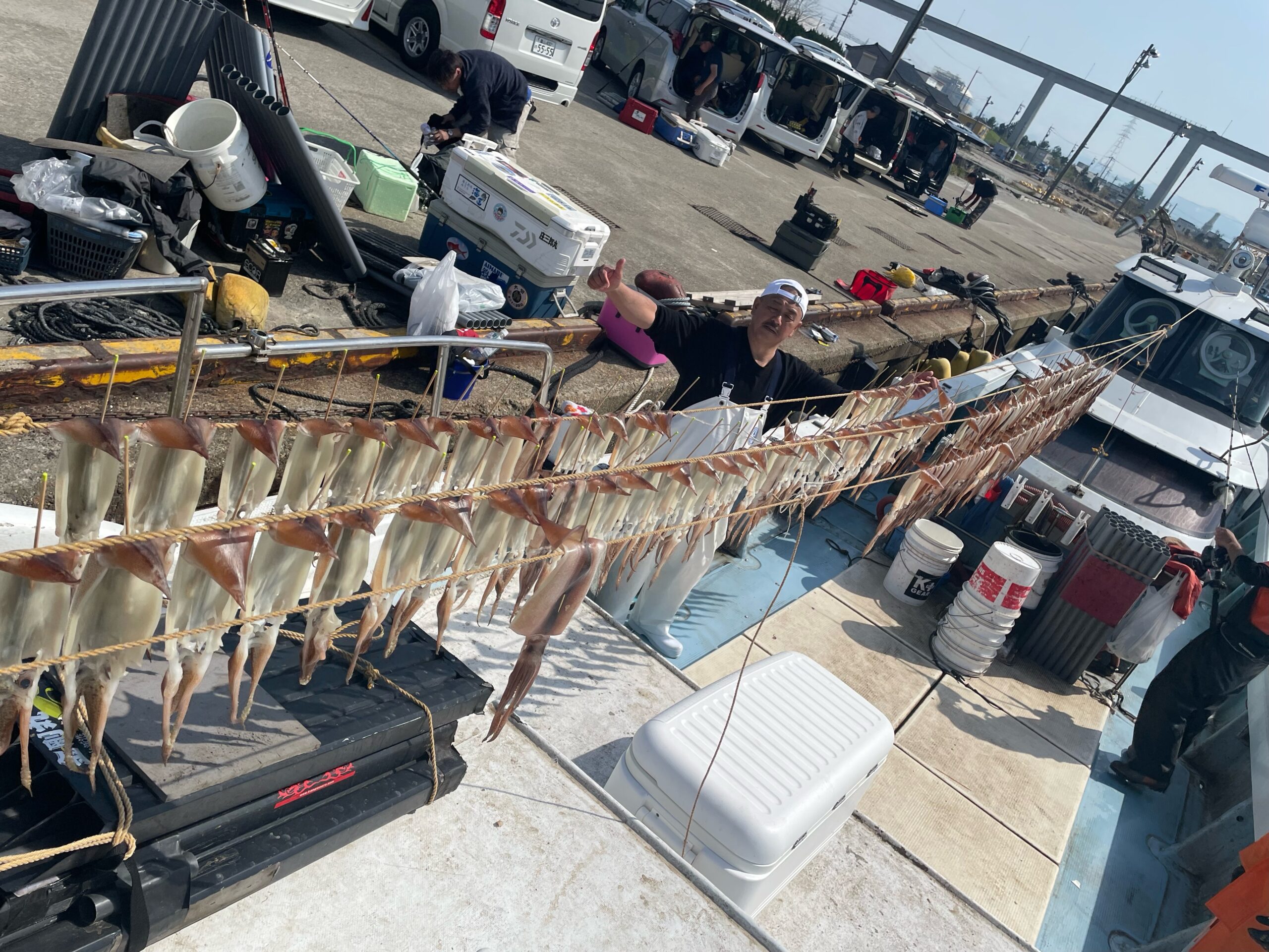 スルメイカ釣り釣果ブログ / 2024年4月14日 2024年4月14日 朝から反応バッチリ! 投入していただく度に皆さまぶらぶら♪ 確変モード! でしたが……9時くらいから急に反応が小さくなり確変が続かなくなってしまい数がのびませんでした。 多く釣られたお客様で120杯弱(2名)と厳しい釣果。 本日はありがとうございました。