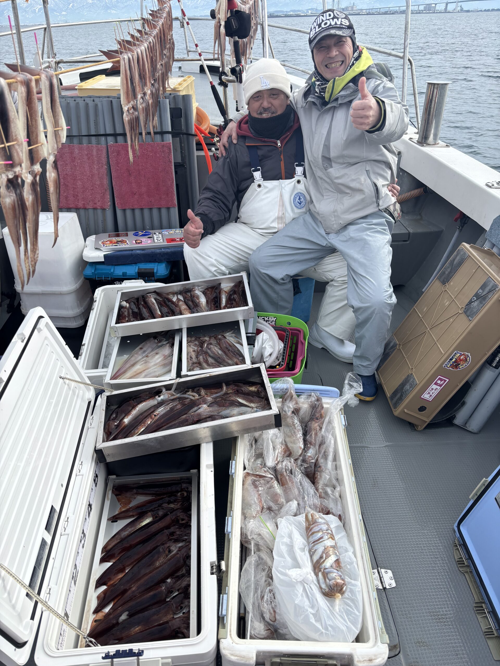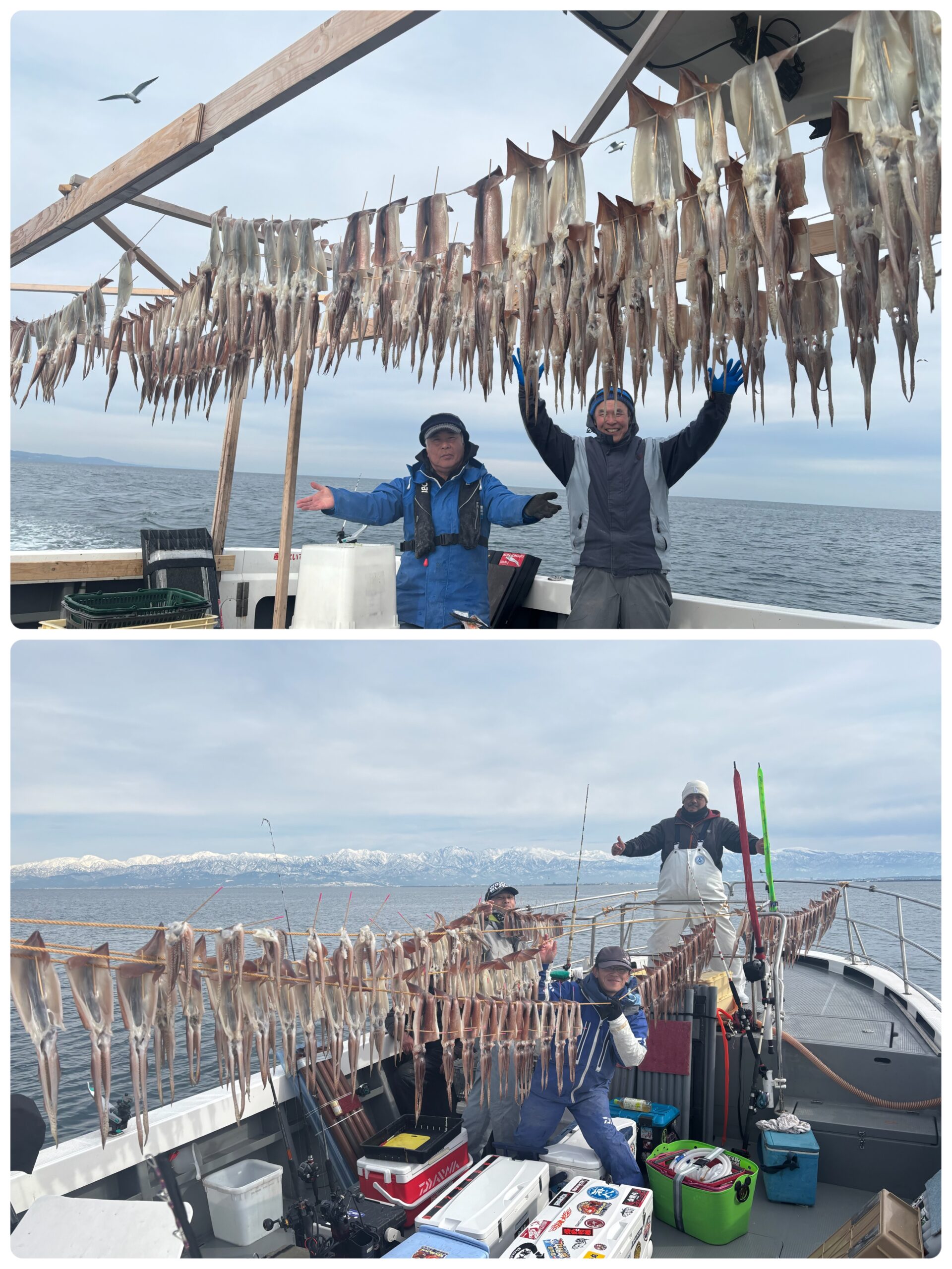 スルメイカ釣果ブログ / 2026年2月10日 2026年2月10日 イカさんまずまずのノリで、天気にも恵まれ天日干しが美味しそうに仕上がりました。 全てを天日干しにはせず、生のイカもお持ち帰りしていかれました。 本日はありがとうございました。