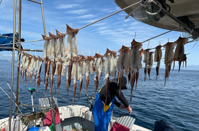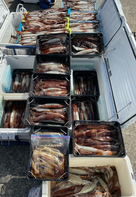 スルメイカ釣り初挑戦のお客様は長い仕掛けに戸惑いながらも40杯は釣っていかれ