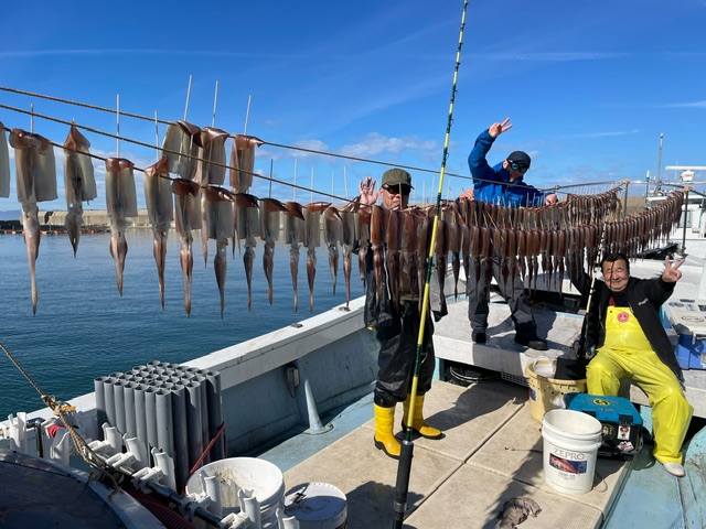 スルメイカ釣果ブログ / 2024年2月18日 2024年2月18日 10時過ぎまでは まずまずのノリ でしたが その後イカさん反応が…。 本日も3桁オーバーとはならず40ー80数杯と普通釣果😢 いつになると爆釣(楽々3桁オーバー)となるのやら…??? 本日のお客様も大漁とはいかず ごめんなさい。