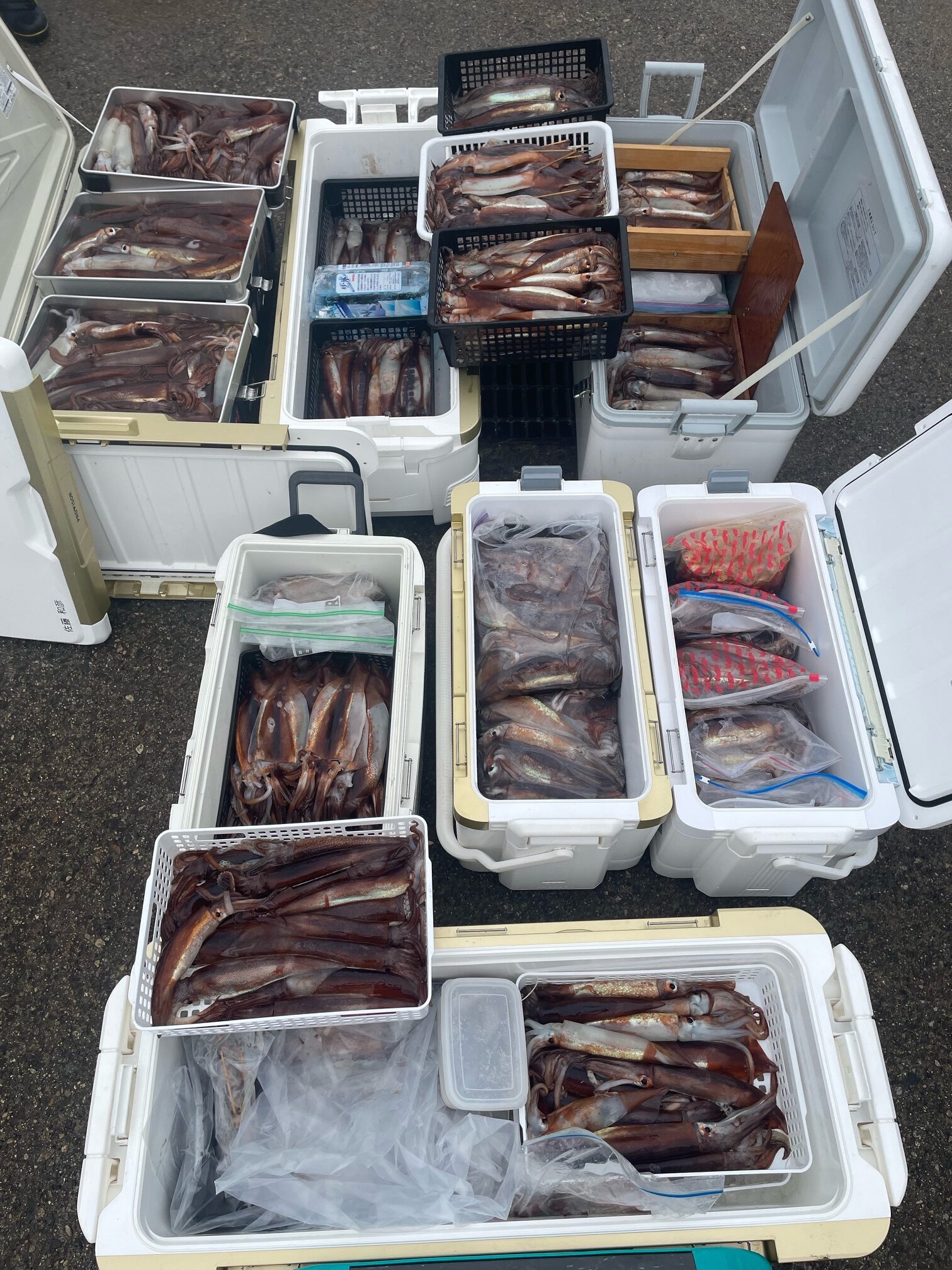 スルメイカ釣果ブログ / 2025年3月3日 2025年3月3日 朝1から11:30頃まで反応バッチリ! 投入する度に入れノリ(*゚∀゚*)♪♪♪ 多く釣られたお客様は楽々朿越え(100杯オーバー)。 本日はありがとうございました。