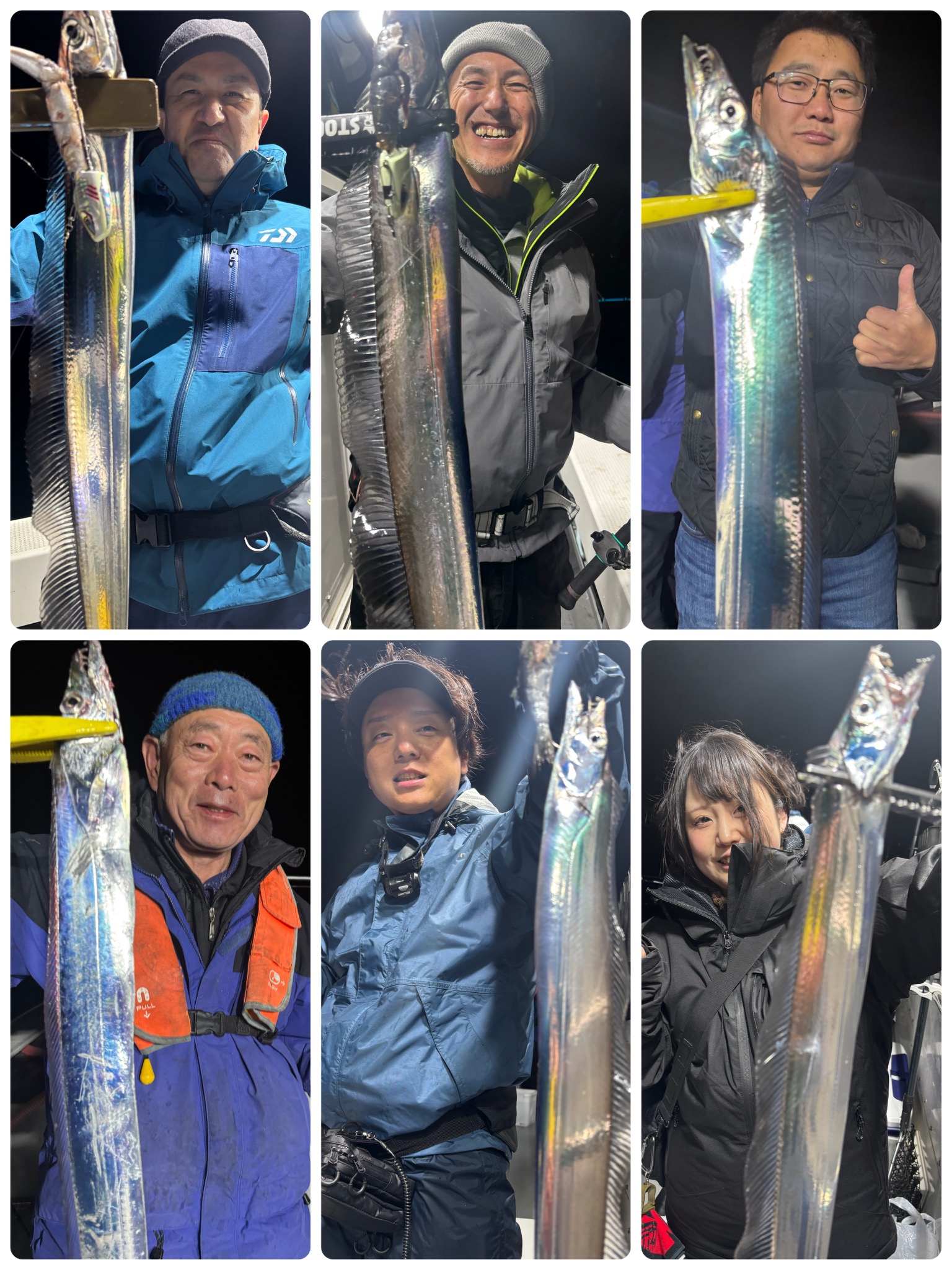 ナイト太刀魚釣果ブログ / 2025年12月21日 2025年12月21日 早朝3時に出航し、太刀魚を狙いに行ってきました。 慣れたお客さま方はもちろん、 太刀魚釣り初体験でオールセットご利用のお客さまも、 ナイスサイズを楽しそうに釣っていかれました🎶 本日はありがとうございました。