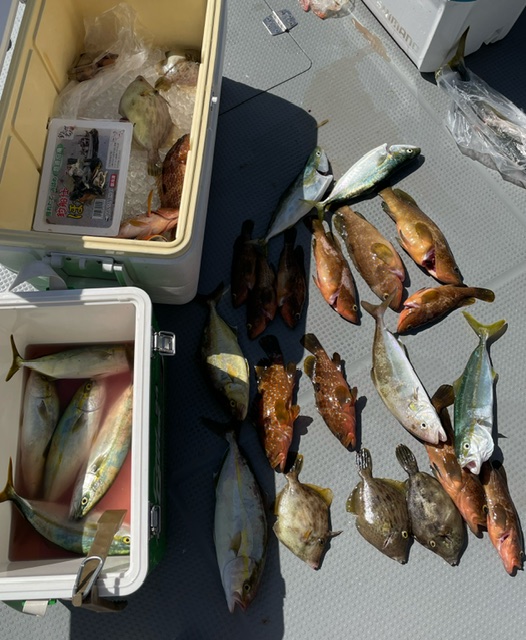 ライトルアー 餌釣り釣果ブログ / 2024年9月24日 2024年9月25日 23日9時 ショート便にて出航。 水深15ー25mまでの浅場の釣り。 キジハタ 青物 カワハギ カサゴなどなど釣っていかれました。
