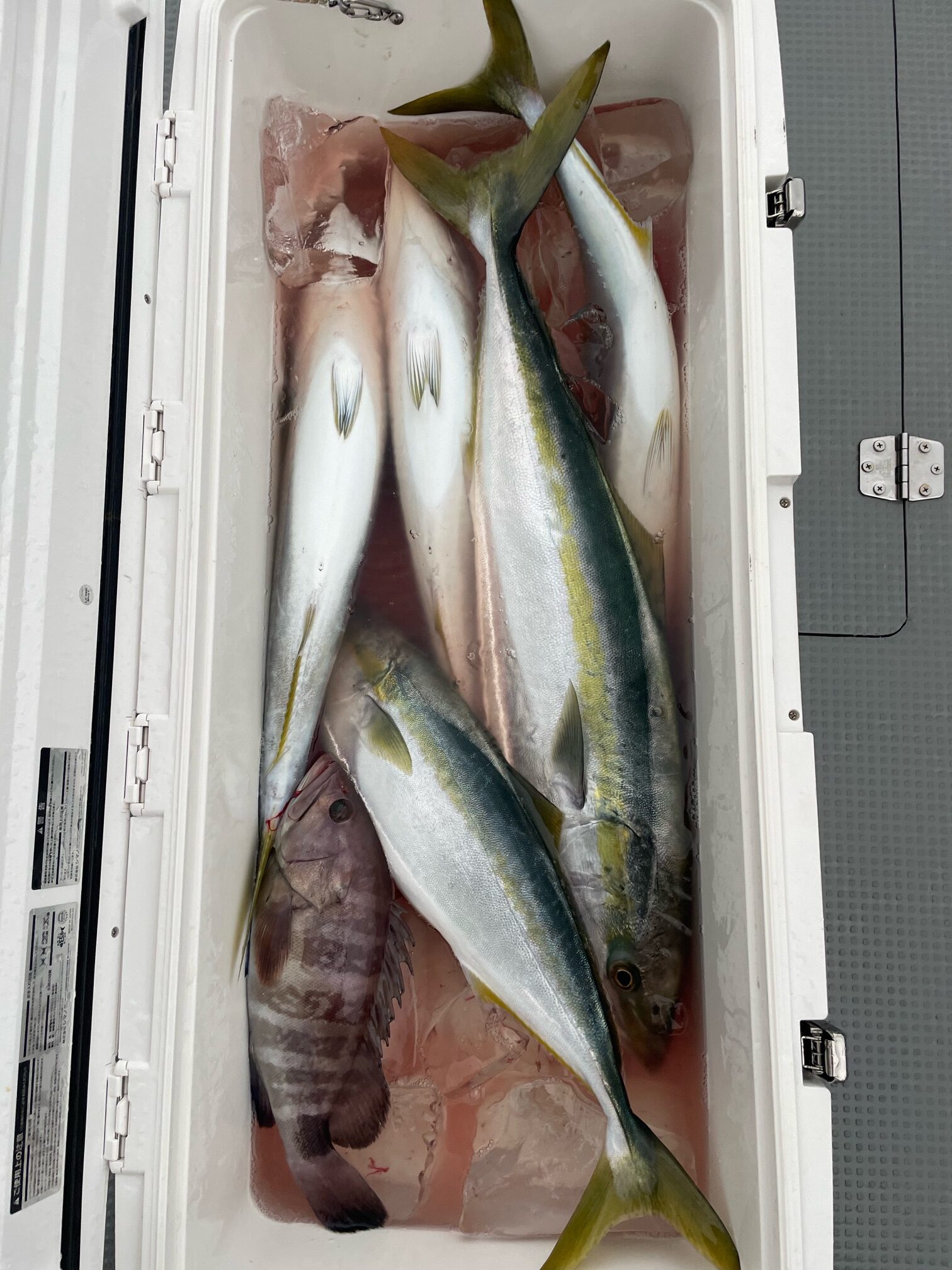 泳がせ釣り釣果ブログ / 2024年12月3日 2024年12月3日 生き餌のアジがなかなか口を使ってくれず、ある程度確保するのに3時間も時間をロスしてしまいました(*_*)。 寒ぶりポイントへ移動し 1流し目に強烈なアタリ! 竿先が突っ込みましたがラインブレイク(>_<)。 その後はワラサ ワラサ 小ぶり ワラサ....。 釣果は小ぶり1本 ワラサ6本 マハタ1匹。 本日はありがとうございました。