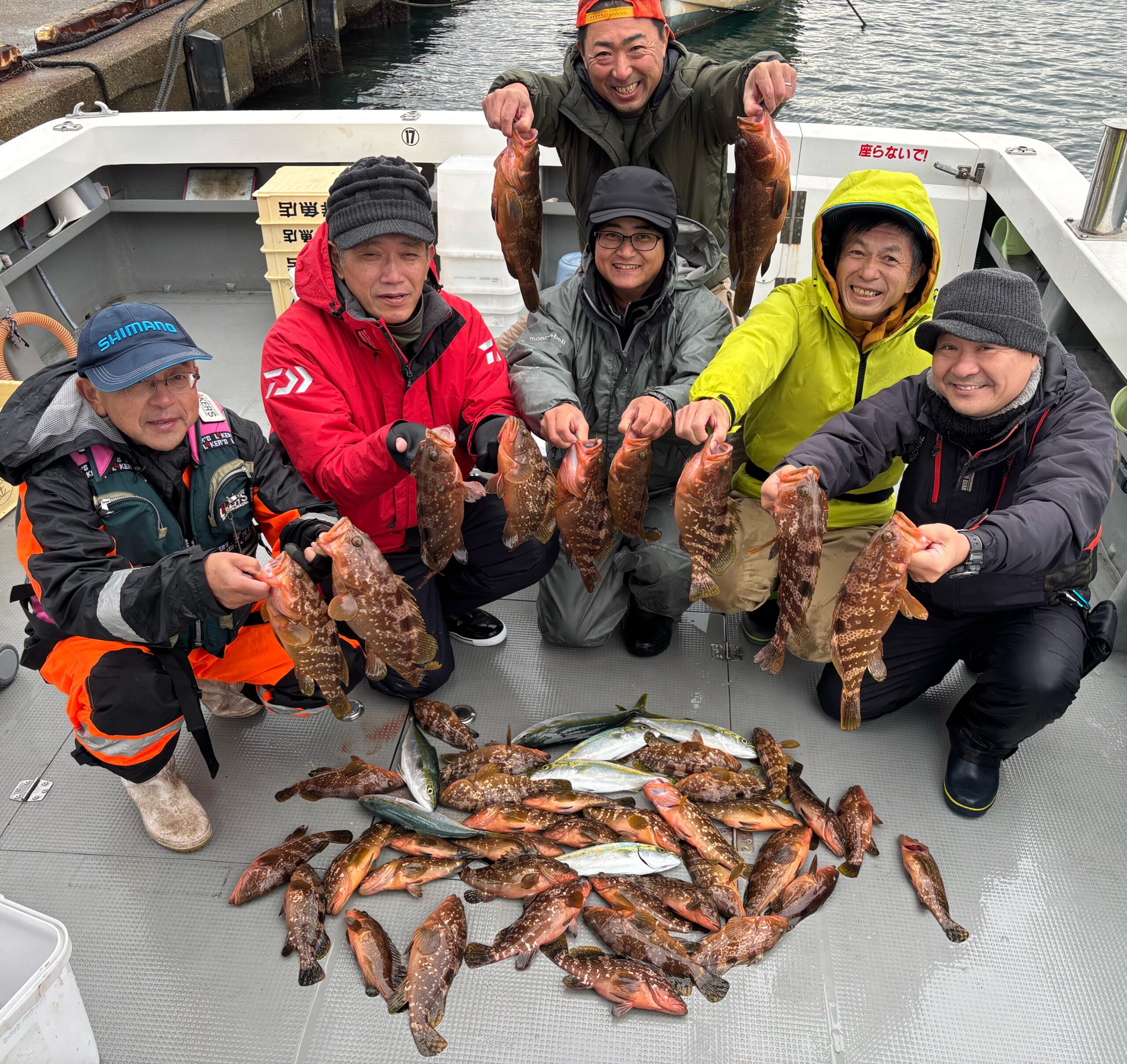 船長お任せ釣り ショート3時間便にて出航。 キジハタの食いが良く 60Lクーラーパンパン(船中50匹以上)になりました(*^^*)♪♪♪